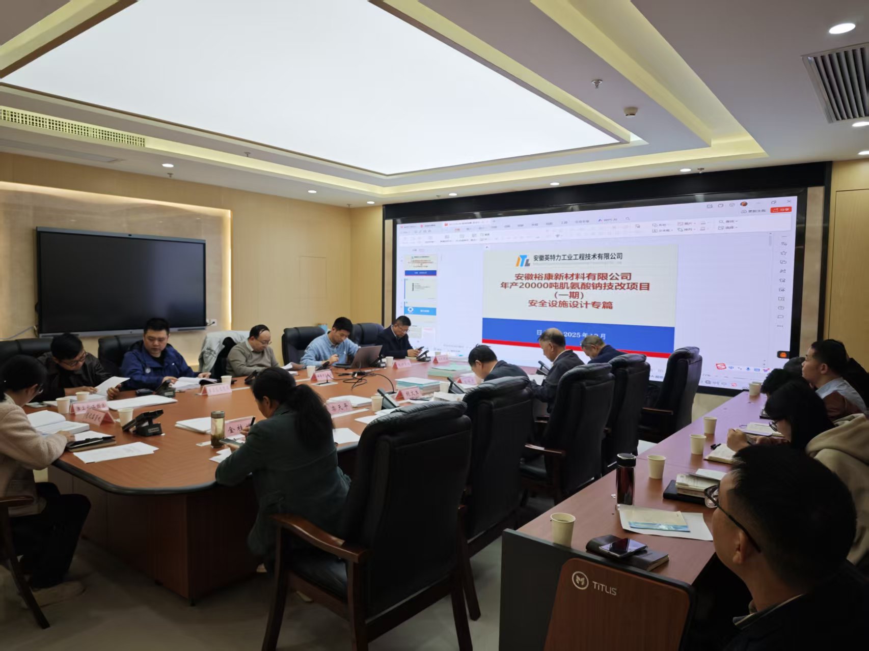 2025年11月17日上午,《安徽豐樂農(nóng)化有限責(zé)任公司全流程自動(dòng)化復(fù)核及設(shè)計(jì)項(xiàng)目》在安徽英特力工業(yè)工程技術(shù)有限公司會(huì)議室一召開,本項(xiàng)目對(duì)苯磺隆和精喹禾靈產(chǎn)品生產(chǎn)環(huán)節(jié)涉及氯化的重點(diǎn)監(jiān)管危險(xiǎn)化...