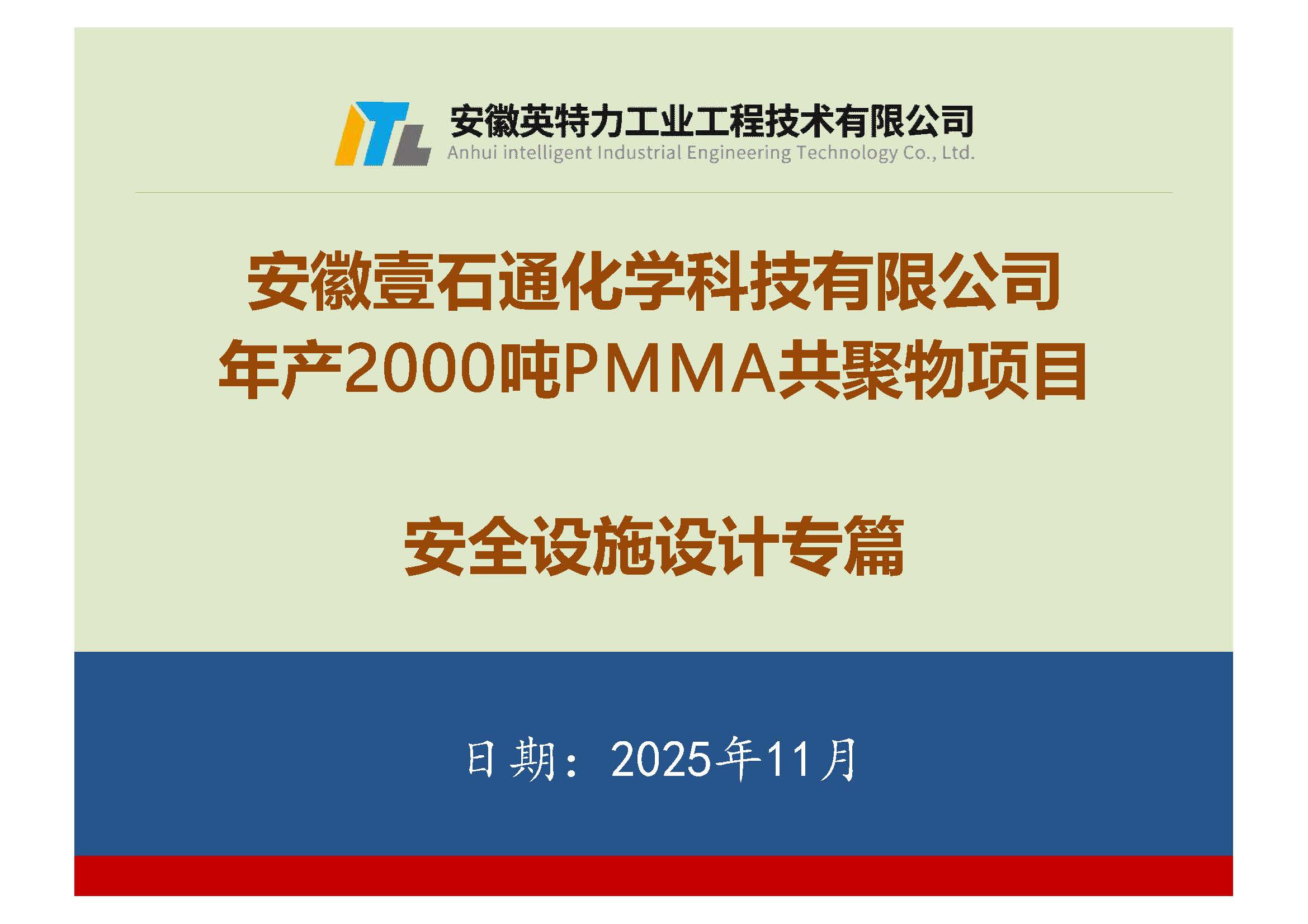 2025-12-12安徽壹石通化學(xué)科技有限公司年產(chǎn)2000噸PMMA共聚物項(xiàng)目安全設(shè)施設(shè)計(jì)專篇順利通過審查